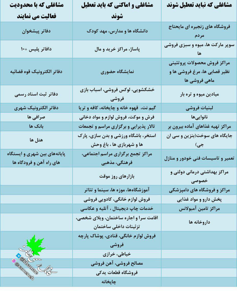 لیست مشاغل مجاز و غیرمجاز برای فعالیت پس از طرح فاصله‌گذاری اجتماعی